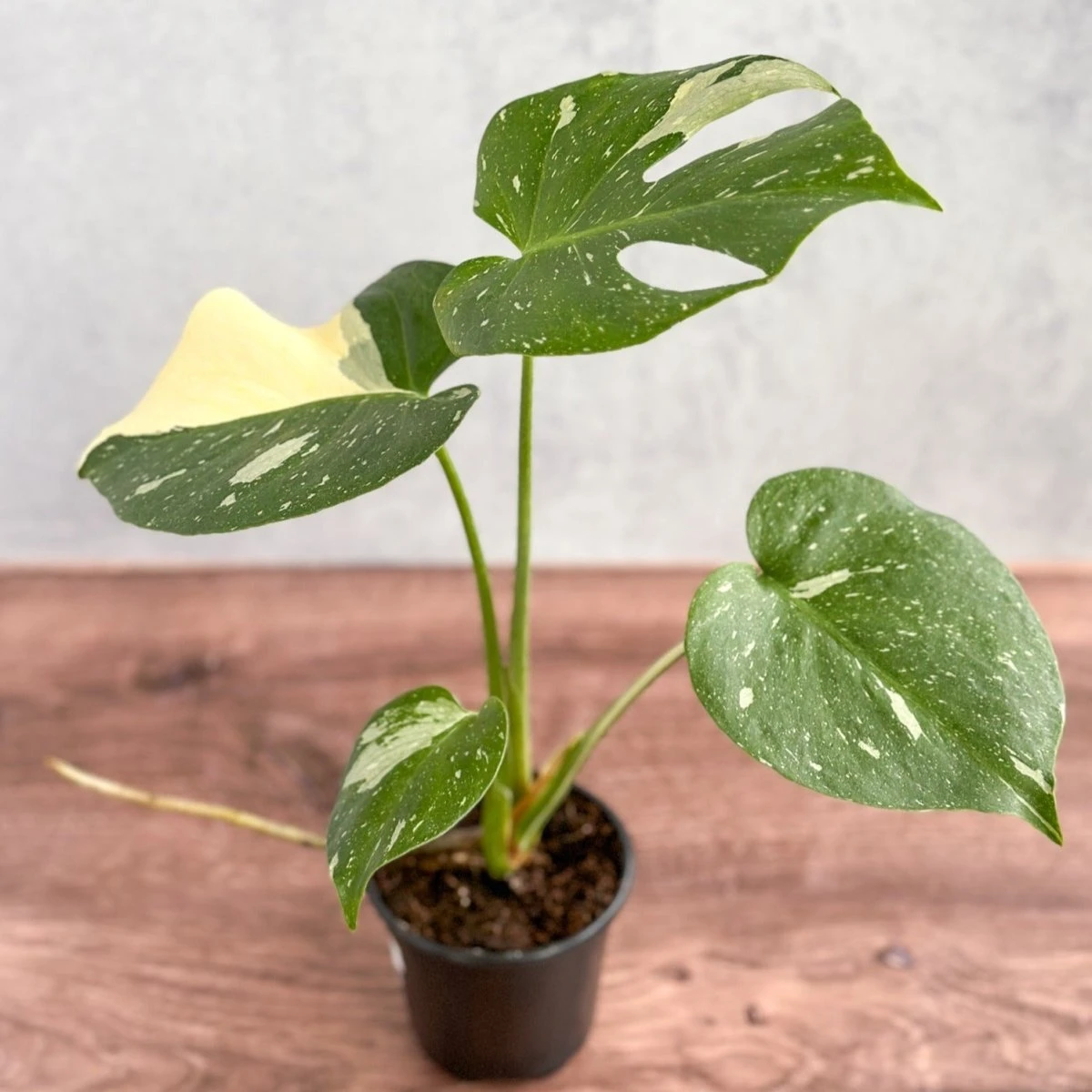 The stunning variegation in the Thai Constellation Monstera is not just for show—it’s the result of a genetic mutation that affects chlorophyll production. This mutation leads to the beautiful cream-colored patches on the leaves, making each leaf unique. The name “Thai Constellation” was inspired by the plant’s star-like patterns, reminiscent of a constellation in the night sky.